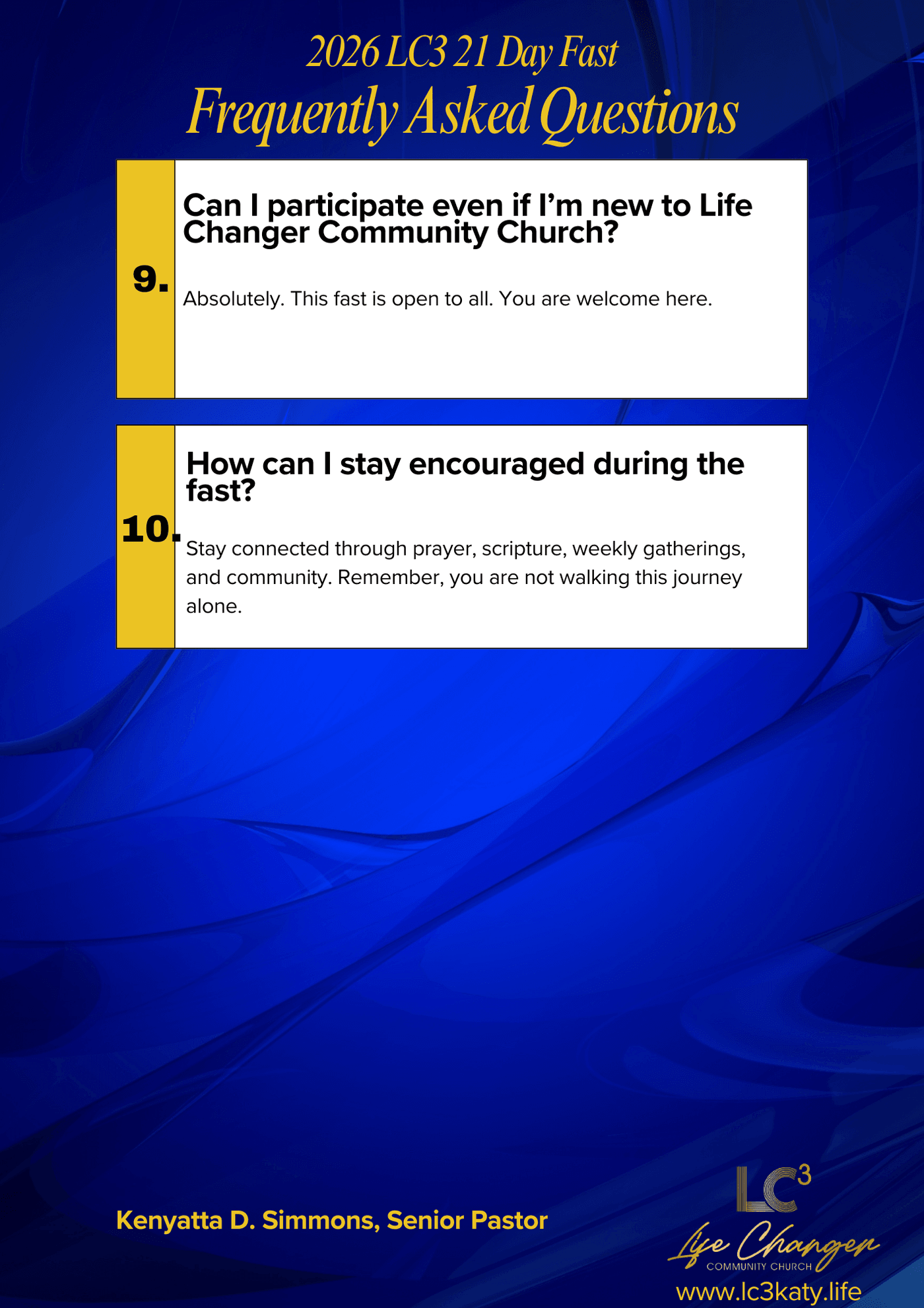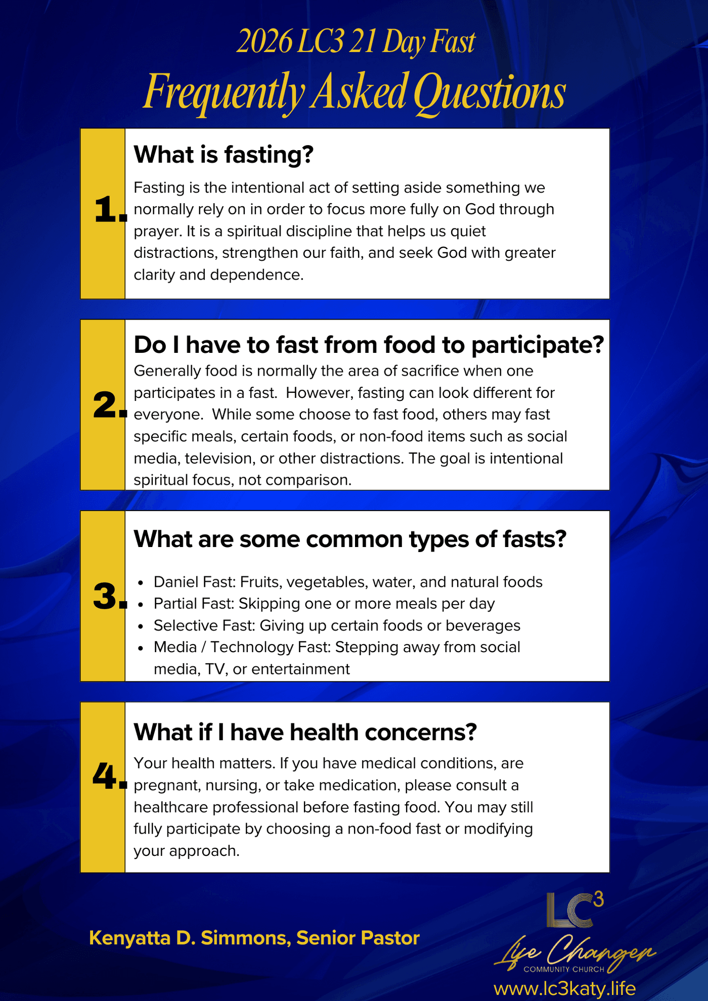Click the link below for the Official LC3 2026 Life Fast Journal. Be sure to pray and read the daily devotions. Also, you may share your favorite recipes and ideas for Fast appropriate meals and snacks.
